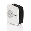 Caloventor totalmente seguro. No consume oxígeno y cuenta con corte de seguridad por caída y sobrecalentamiento. Doble posición: Horizontal y vertical. Nuevo diseño con mayor caudal de aire. Temperatura regulable e indicador de funcionamiento luminoso. Ocupa poco espacio. Es de color blanco con negro y tiene una potencia de 1000/2000 W. Alto: 30 cm. Ancho: 25 cm. Profundidad: 15 cm