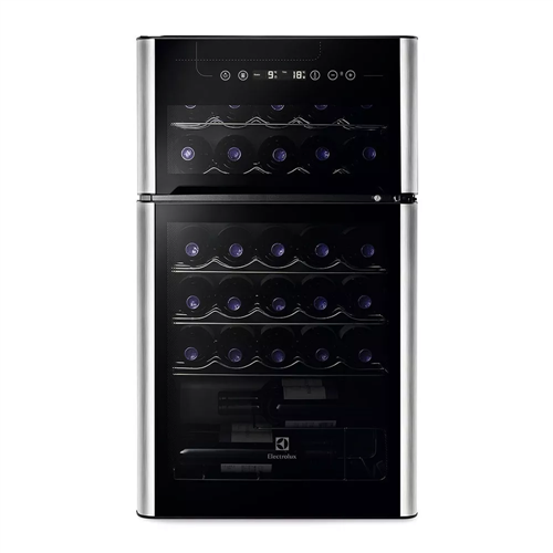ESPECIFICACIONES TECNICAS Modelo: ERWV29 Familia: Cava de vino Capacidad de Botellas: 29 Puerta: doble de vidrio Control de Temperatura: digital Rango de Temperatura (en °C): +5 a +18 Luz Interior: si Alto (en cm): 89 Ancho (en cm): 53 Profundidad (en cm): 47,8 Observaciones: dos compartimientos diferentes - temperaturas independientes - estantes removibles - parte superior puede ser utilizada como bar Color: negro Pais de Origen: China