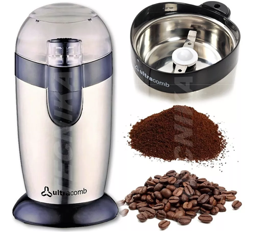 CARACTERISTICAS TECNICAS. » ULTRACOMB MO-8100A - Molinillo De Cafe Eléctrico, Acero Inoxidable Molinillo eléctrico de la marca ultracomb esta posee un cuerpo de acero inoxidable para una mayor resistencia. una eficaz cuchilla también de acero inoxidable y una potencia en el motor de 120 watts. Este ideal molinillo conserva todo el aroma del café. además tiene un novedoso diseño que hace más fácil su limpieza • Cuerpo en acero inoxidable • Motor de 120W • Cuchilla de acero inoxidable • Capacidad aprox 50gr. • Puede moler semillas. • Conserva todo el aroma del café • Espacio guarda cable • Dimensiones (cm) : 9 (diametro) x 17 (alt.) • Apoyos de goma 220V - 50Hz » GARANTÍA OFICIAL 6 MESES BRINDADA POR ULTRACOMB ARGENTINA