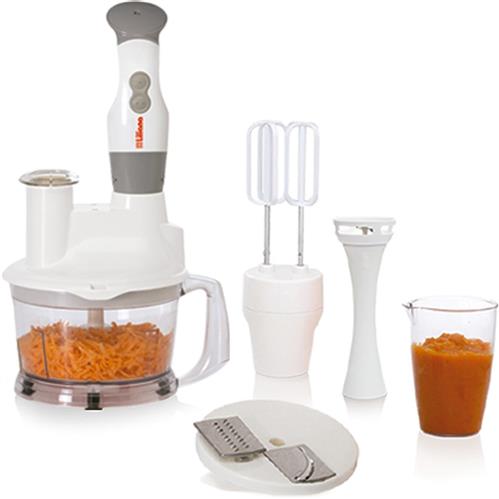 PROCESADORA TOTALMIX 5 en 1 - Liliana Modelo: AM459 Características • 5 EN 1: Pica, ralla, rebana, licúa y bate. • Procesadora + licuadora manual + batidora • Amplio bowl con capacidad de 1.5 lts. • Boca que permite introducir alimentos durante el procesado. • Disco portacuchillas intercambiables para rallar y rebanar. • 2 velocidades. • Cuchilla picadora de acero inoxidable. • Accesorio doble batidor. • Base antideslizante. • Vaso medidor de 900 cm³ con pico vertedor. • Potencia: 500 watts.